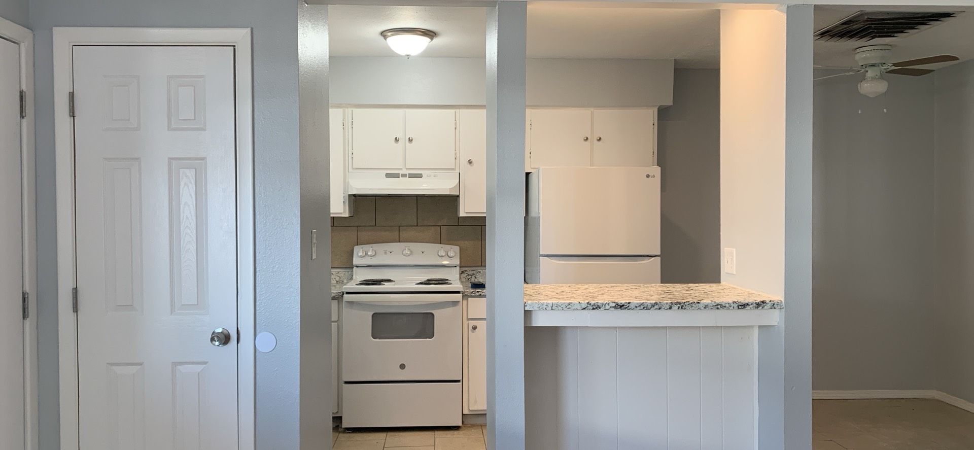 This beautiful 1 bed/1 bath apartment is a naturally lit. With an open-floor plan with tile flooring in the living room, kitchen, dining room and bathroom. There is vinyl flooring in the bedroom for a warmer feel. The kitchen comes with new stainless-steel appliances and marble counter tops! It spreads out into the living area including a space for a small kitchen table to enjoy your meals.
