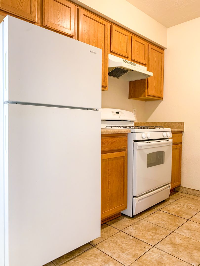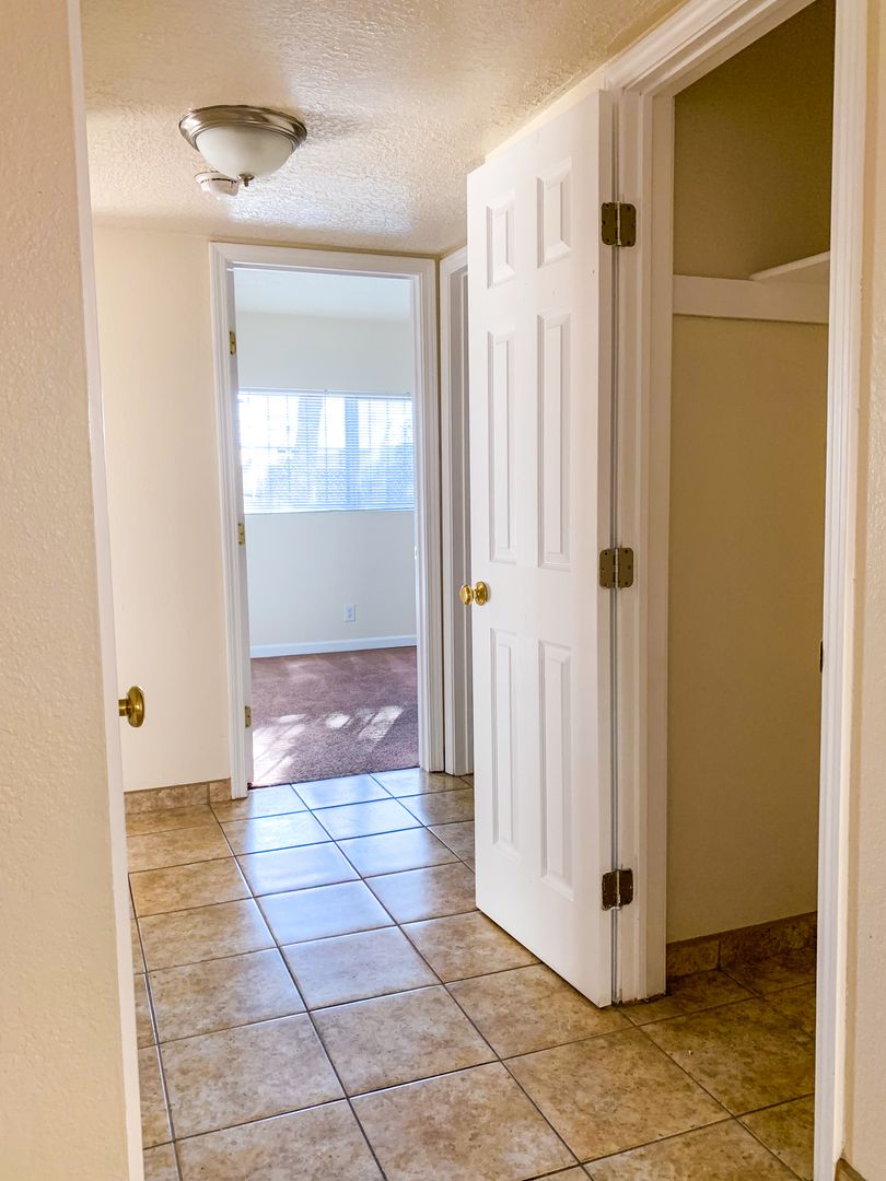 Spacious remodeled Unit that has tile throughout the living areas and carpet in the bedrooms. Newer cabinets, counters, and appliances. Security bars on all windows; security screens on doors. Parking available on-site.